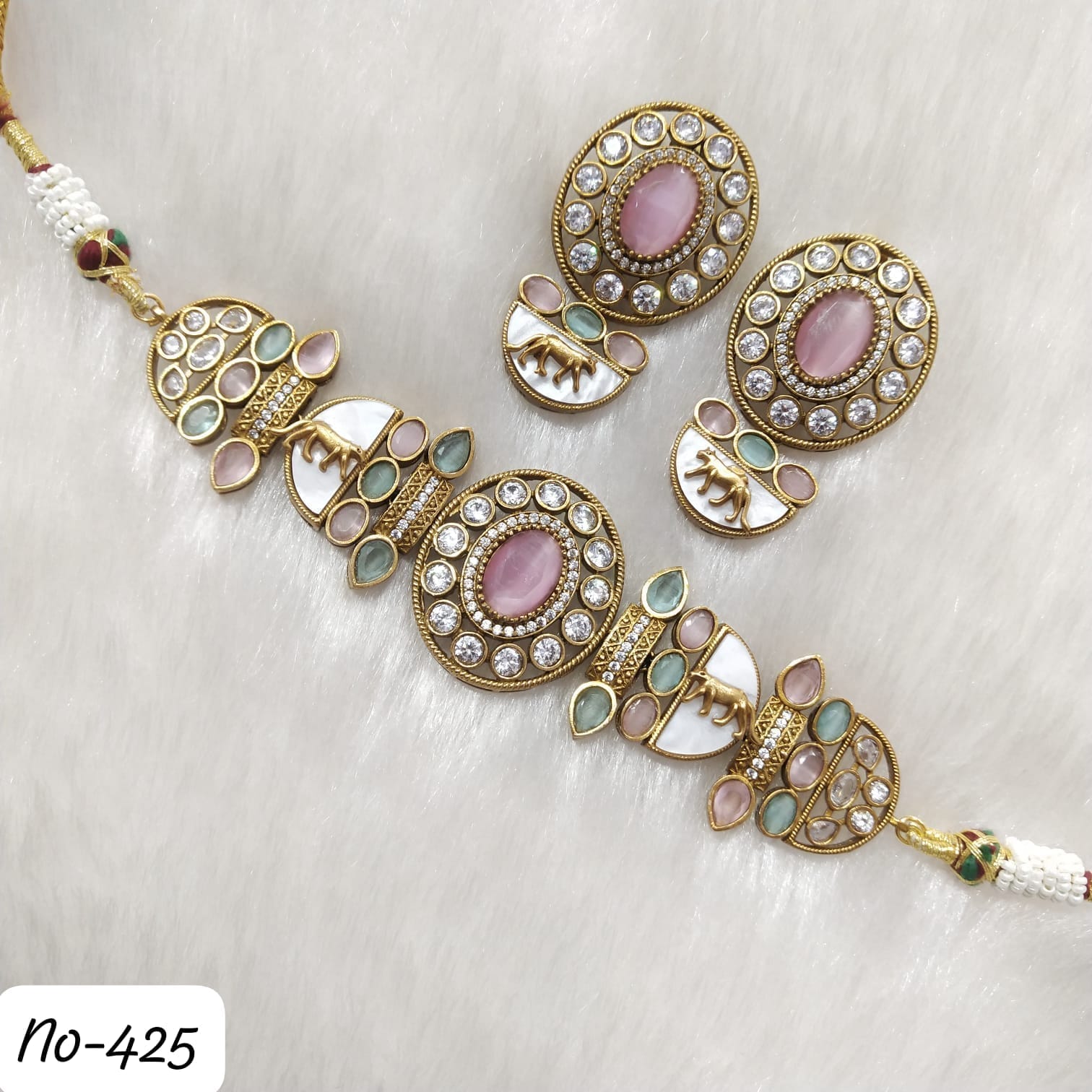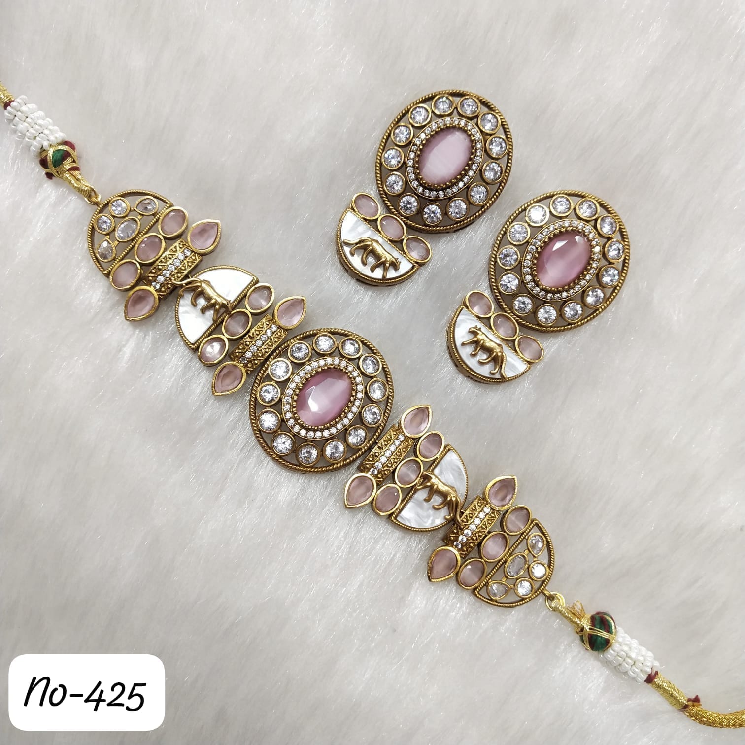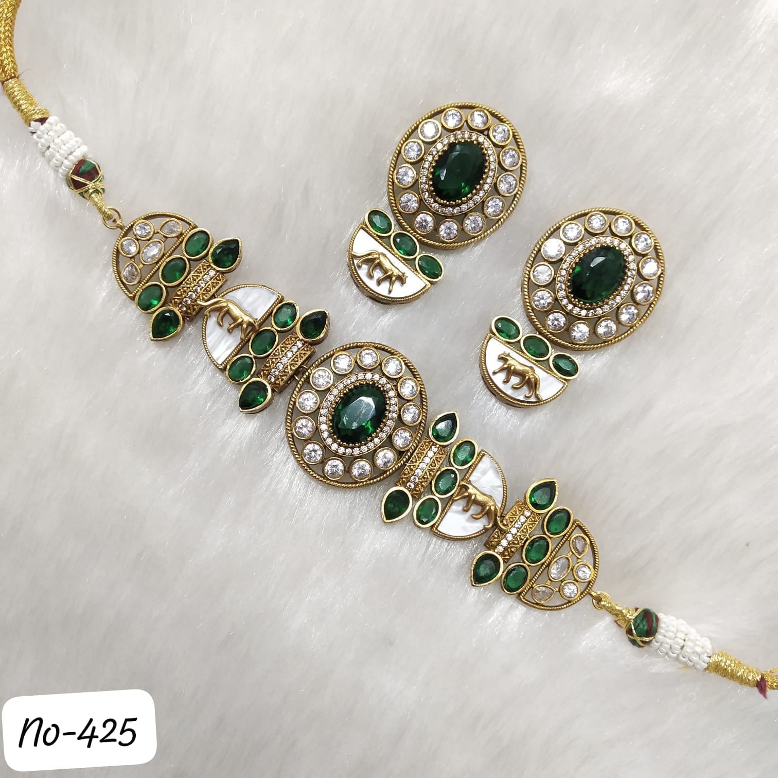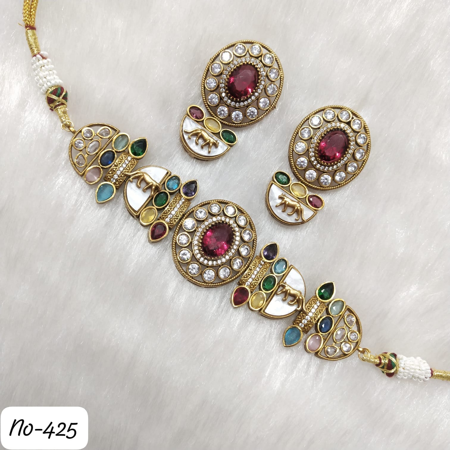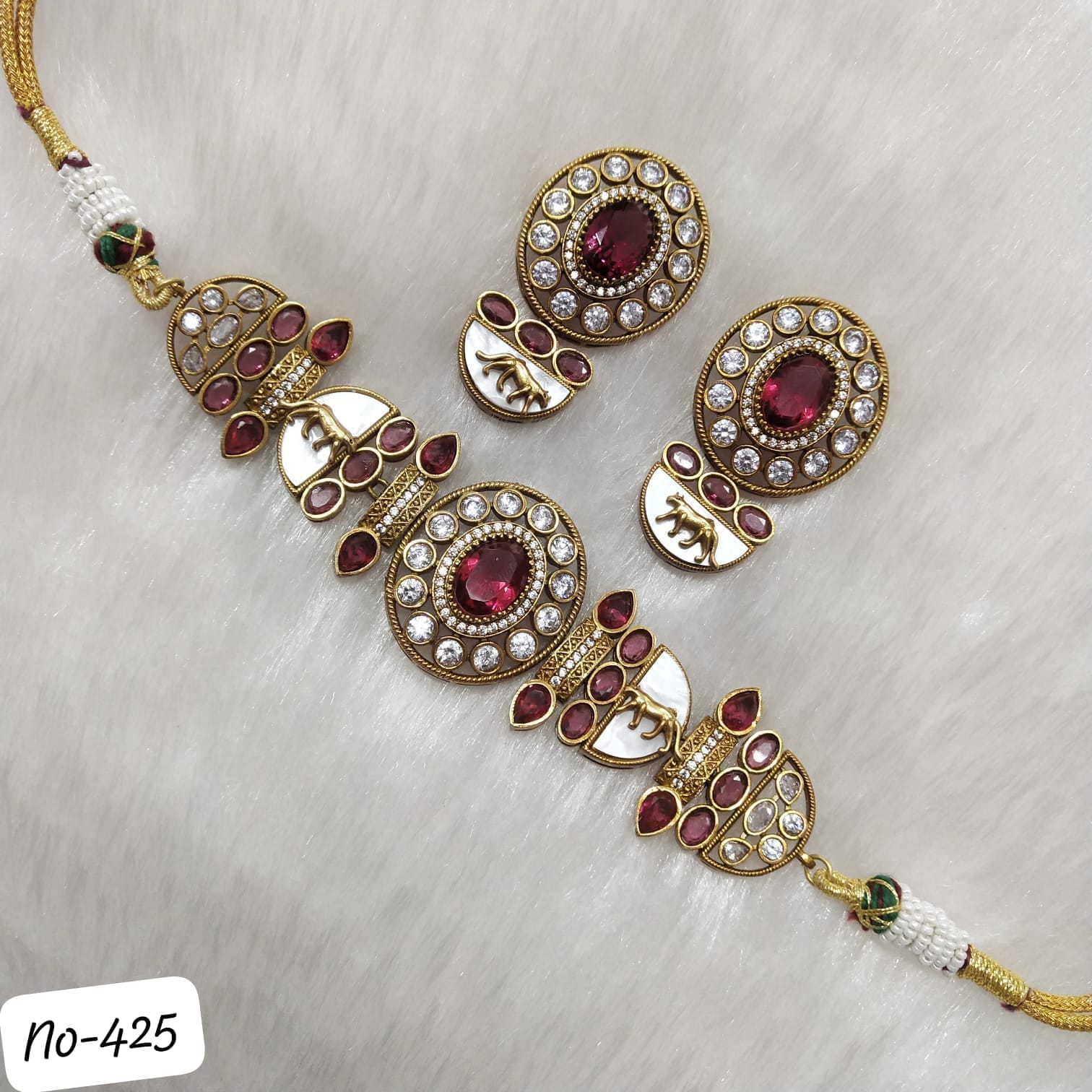 Available in a stunning range of colors, the set includes a choker necklace and matching earrings, offering a complete traditional jewelry look. Its intricate design and rich finish make it a must-have addition to your ethnic collection.
